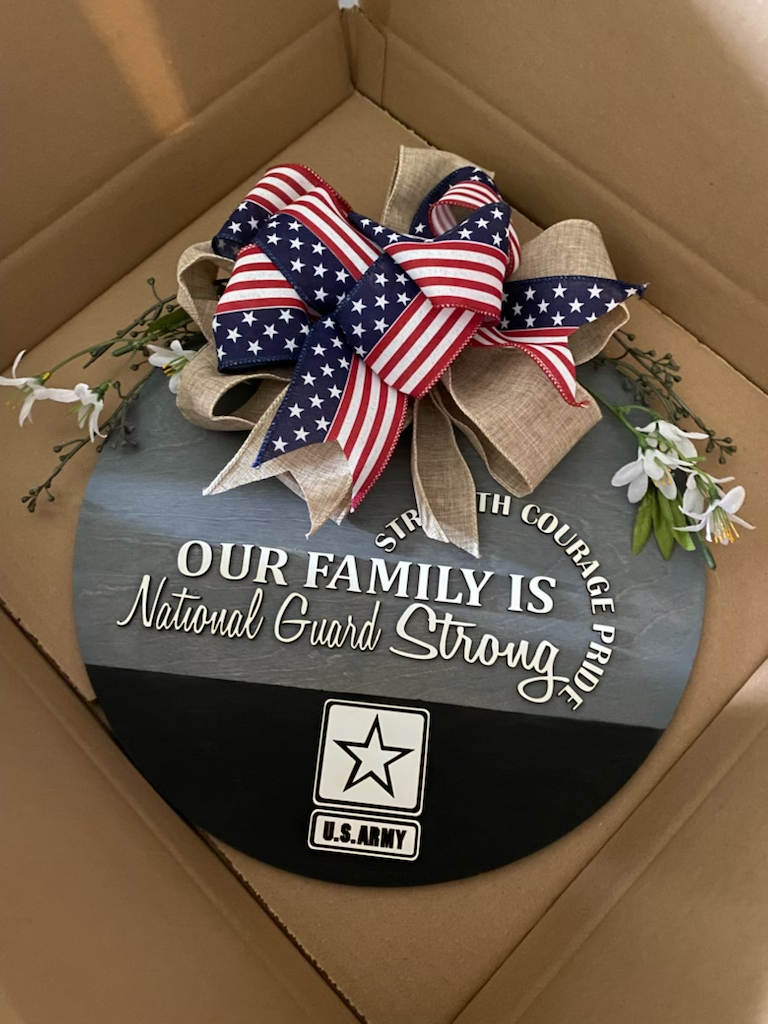 A great way to honor your military service members. A door round is a decoration that can be put on any exterior door, usually the front door.